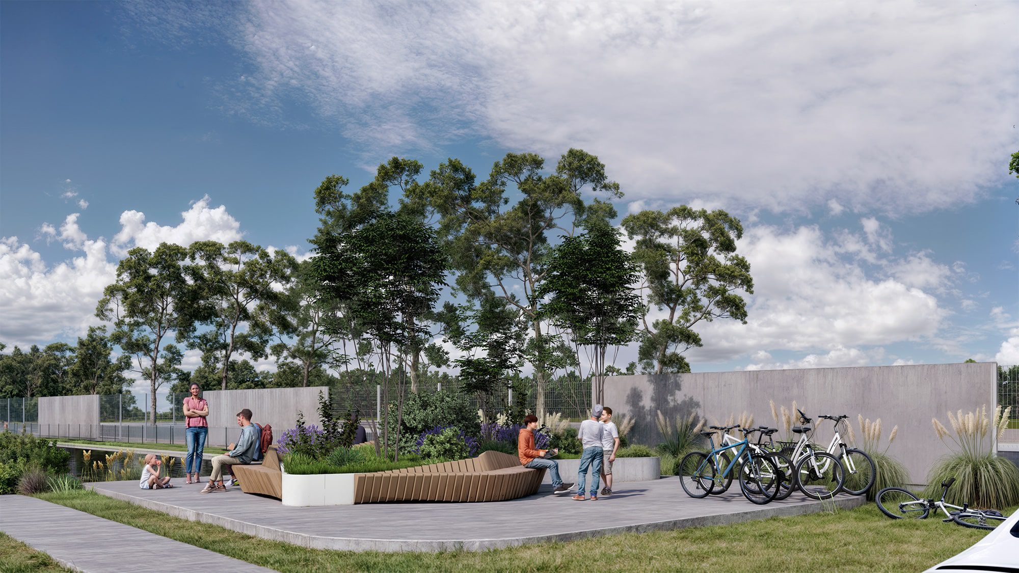 El parque de entrenamiento a cielo abierto combina equipamiento antivandálico de última generación con un entorno natural pensado para moverse. Vinculado al circuito de salud y la ciclovía perimetral, incluye áreas de calistenia, zona de estiramiento y espacios de relajación: un recorrido completo para quienes eligen una vida activa.