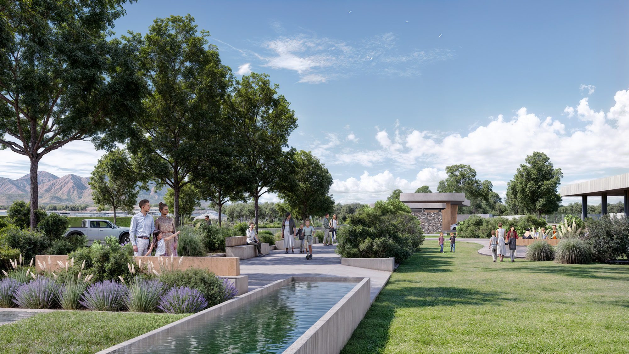 El interior de NUMA acompaña la visión de áreas verdes, ciclovía perimetral, espejos de agua y espacios de descanso. Cada metro está diseñado con propósito: construir una comunidad que valore el buen diseño, la tranquilidad y la vida al aire libre, en un Maipú que sigue creciendo y proyectando futuro.