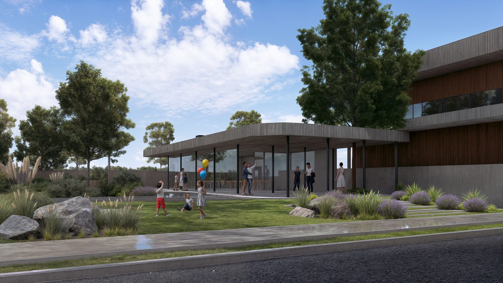 El barrio cuenta con oficinas administrativas propias, diseñadas en coherencia con la estética de NUMA. Un espacio funcional, con sala de reuniones y atención personalizada, pensado para acompañar el día a día de la comunidad y brindar soluciones rápidas y confiables.